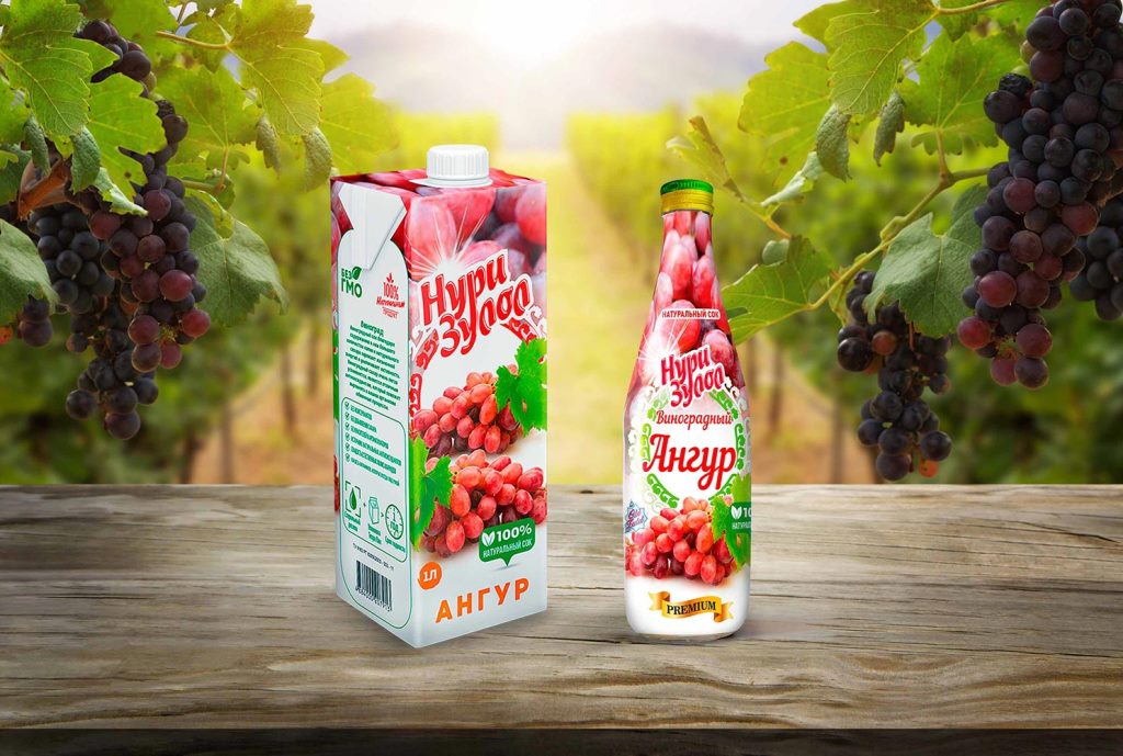 Новый продукт на заводе «Оби Зулол» выпускается в двух видах — чистый виноградный сок, и виноградный сок с добавлением других ягод и фруктов.