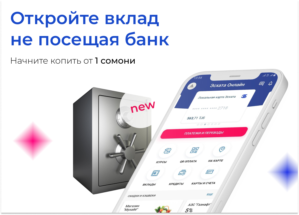 «Мы постарались максимально упростить процесс, поэтому сегодня клиент может открыть вклад, не посещая банк за несколько кликов. Если в «Эсхата Онлайн» открытие вклада не отображается, нужно обновить мобильное приложение. Все ключевые характеристики вклада доступны, их удобно открывать по мере необходимости» — отметил Глава Департамента цифрового бизнеса Сайдуллоходжа Насуллоев.
