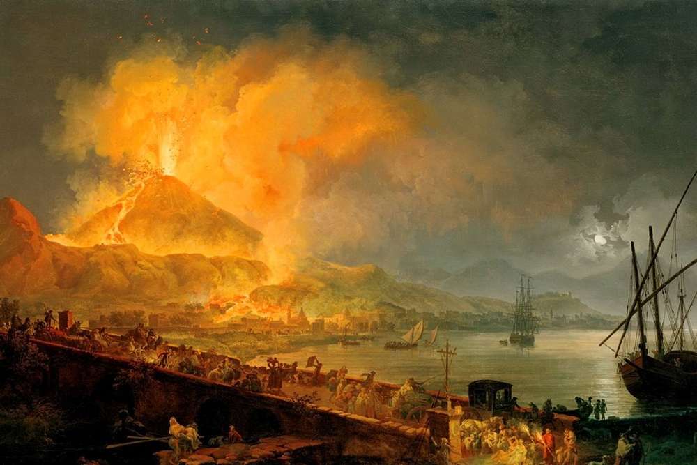 24 августа 79 года нашей эры произошло первое известное и самое ужасное извержение Везувия. В тот день рано утром над вулканом, который все давно считали спящим, поднялось черное облако. Небо вдруг сделалось грозным, сгустки пепла, извергающиеся из вулкана, полностью скрыли солнце, и наступила кромешная тьма. На улицу нельзя было выйти, не прикрыв голову подушкой, так как вместе с пеплом на голову падали тяжелые камни.