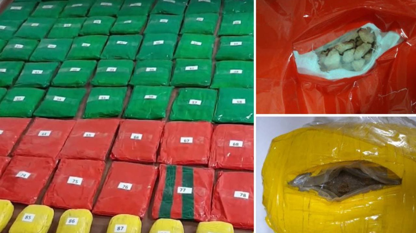 "При вскрытии обнаруженных свертков было установлено, что в 82 свертках зеленого и красного цвета находилось наркотическое средство героин общим весом 85 килограммов 505 граммов, а в остальных 11 свертках желтого цвета наркотическое средство гашиш общим весом 11 килограммов 425 граммов. Предотвращена попытка сокрытого ввоза на территорию нашей республики в общей сложности 96 кг 930 гр. наркотических средств", — сообщает узбекская таможня.