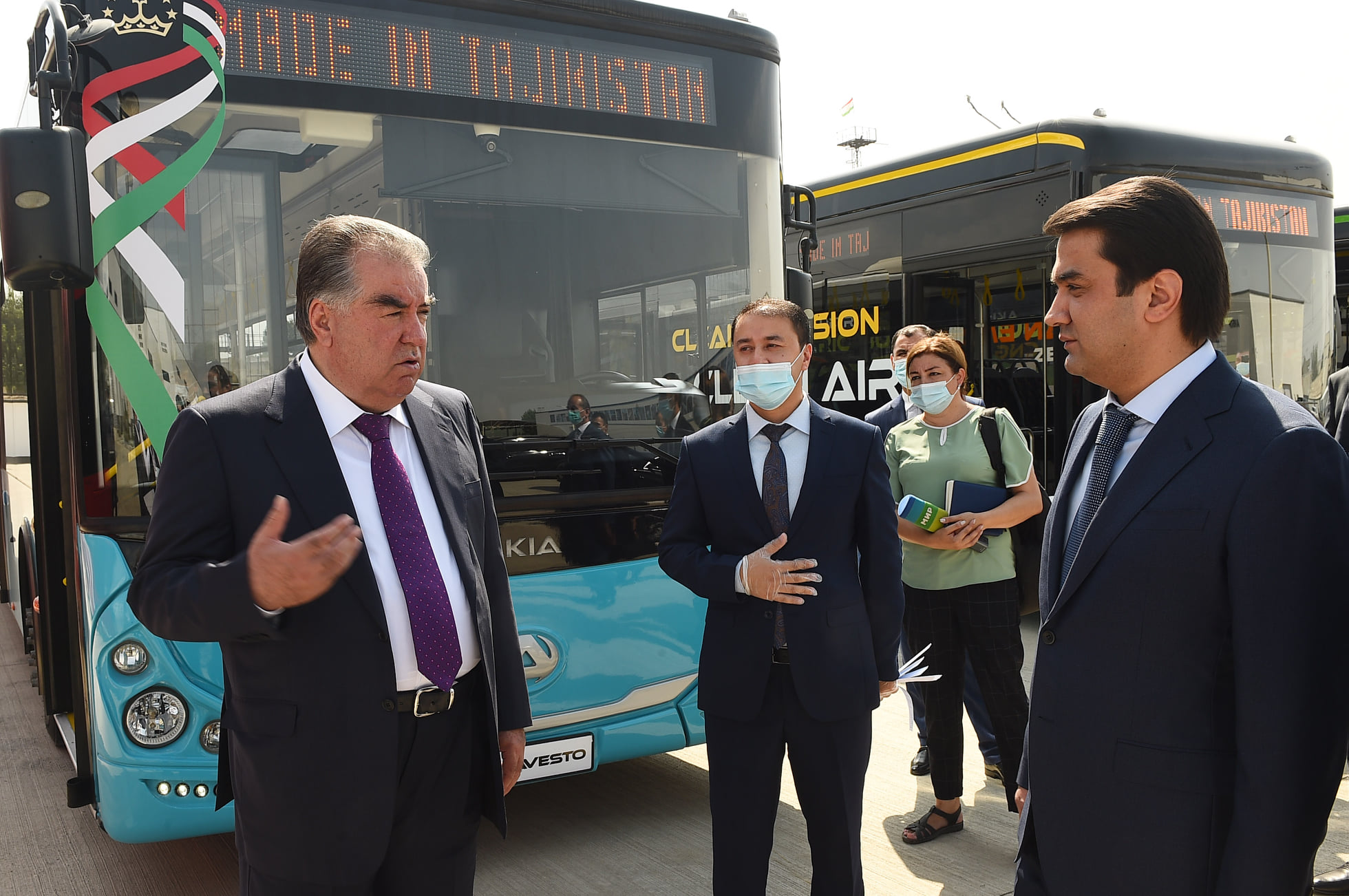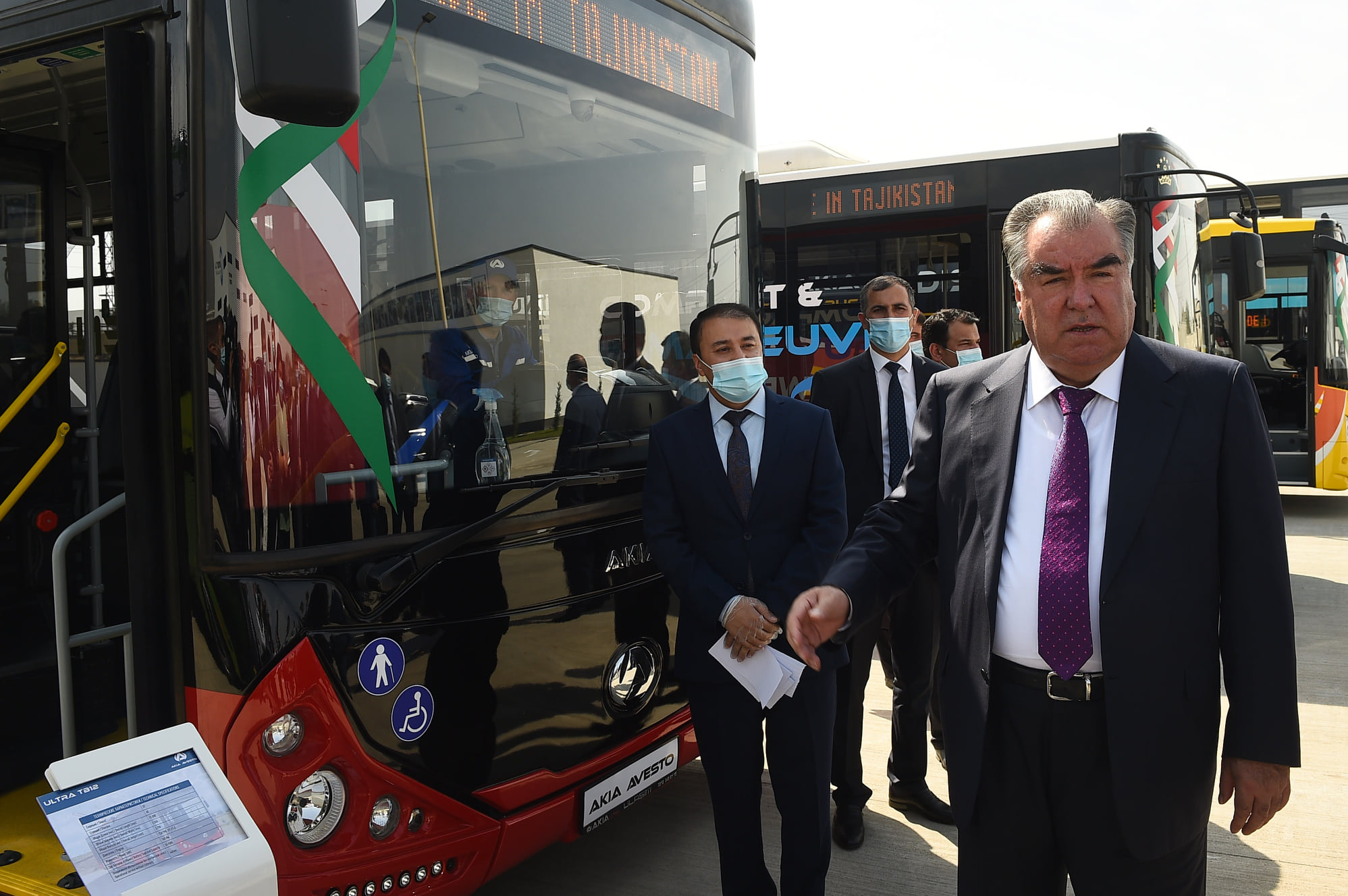 Эмомали Рахмон и Рустами Эмомали сегодня приняли участие в презентации междугородных автобусов «Акиа Ориё».