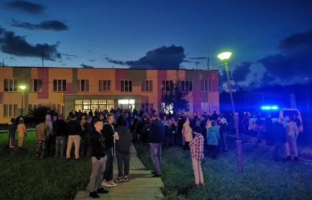 Вечером 13 сентября возле общежития, где живут мигранты, работающие на компанию "Экоокна", собралось несколько сот человек.