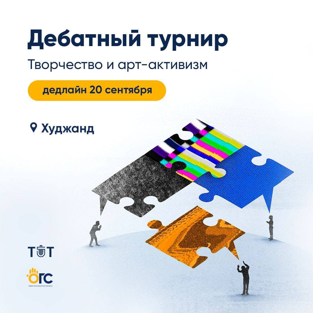 Art-club совместно с дебатным клубом DC в TUT Co-working space в городе Худжанде, рад объявить об открытии заявки на дебатный турнир "Творчество и арт активизм", который состоится в Co-working Space "TUT"