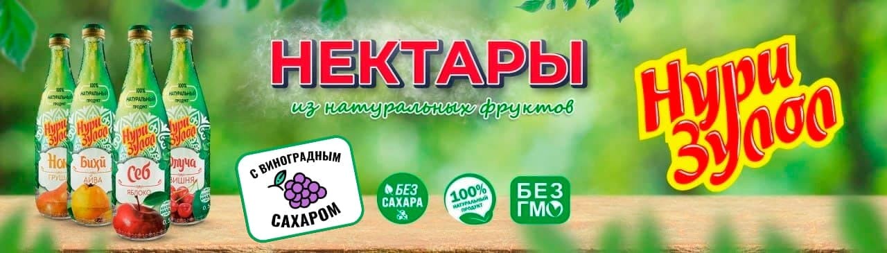 Для вашего выбора компания расширила ассортимент соков и нектаров. Теперь на прилавках торговых точек, вы можете купить по доступным ценам, натуральные соки «Нури Зулол» в нескольких видах тары, со вкусами: