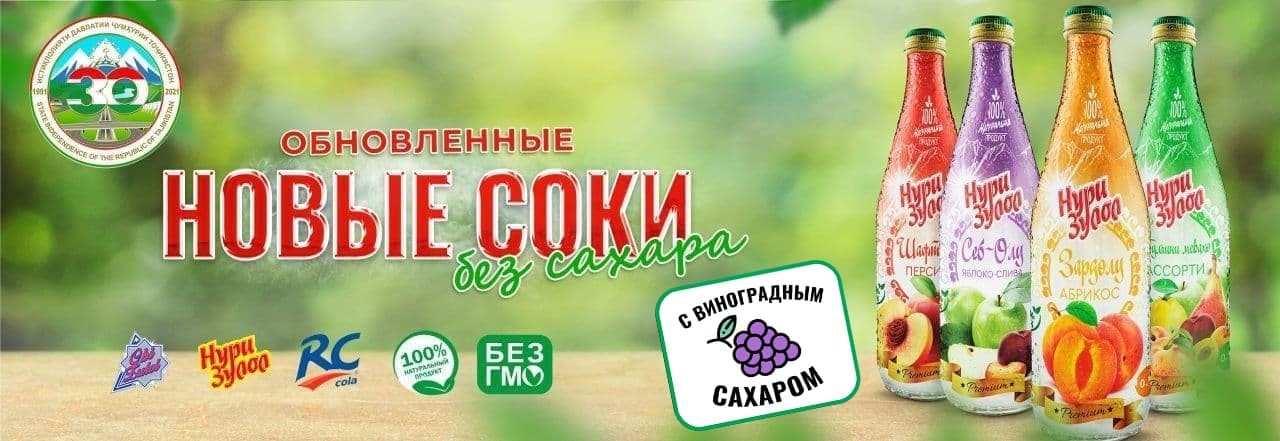 Всю продукцию с торговой маркой «Нури Зулол», которую более 20 лет производит для вас компания «Оби Зулол», вы можете найти на полках торговых точек Таджикистана, под слоганом «НАЦИОНАЛЬНЫЙ ПРОДУКТ МИРОВОГО КАЧЕСТВА ПО ДОСТУПНОЙ ЦЕНЕ».