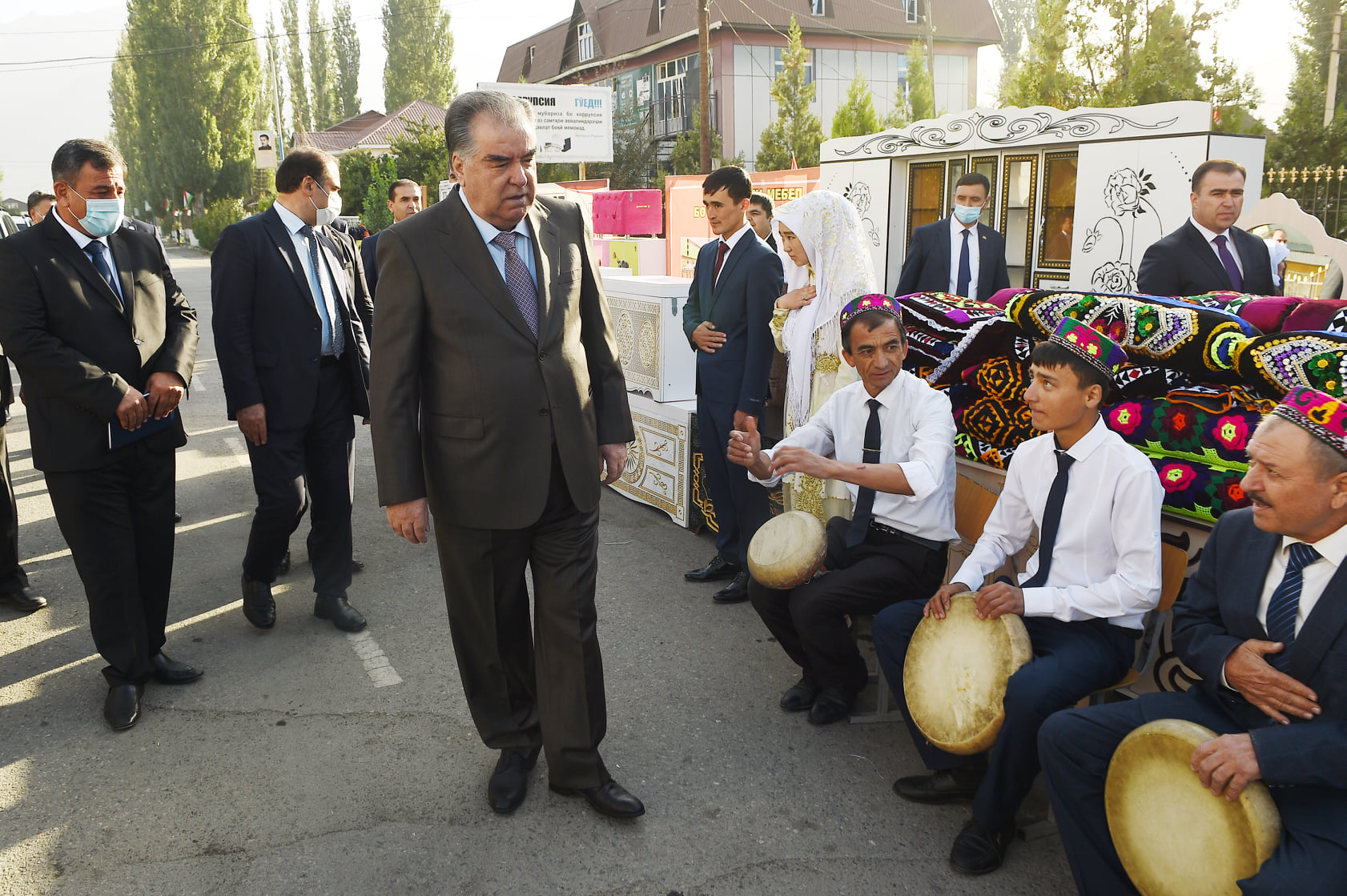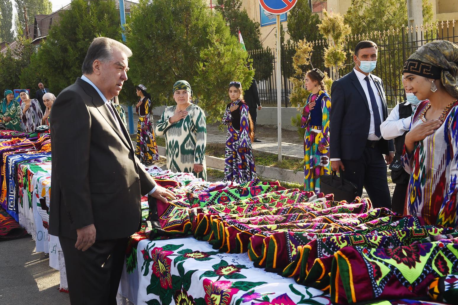 Эмомали Рахмон посетил выставку народных ремёсел жителей Ляхша.