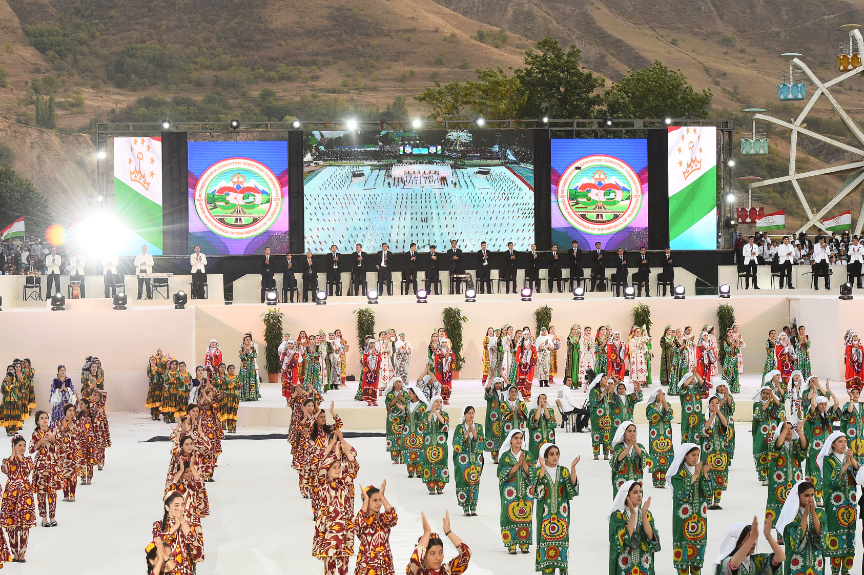 После выступления Эмомали Рахмона прошла красочная концертная программа мастеров искусств и артистов, посвященная 30-летию Государственной независимости республики.