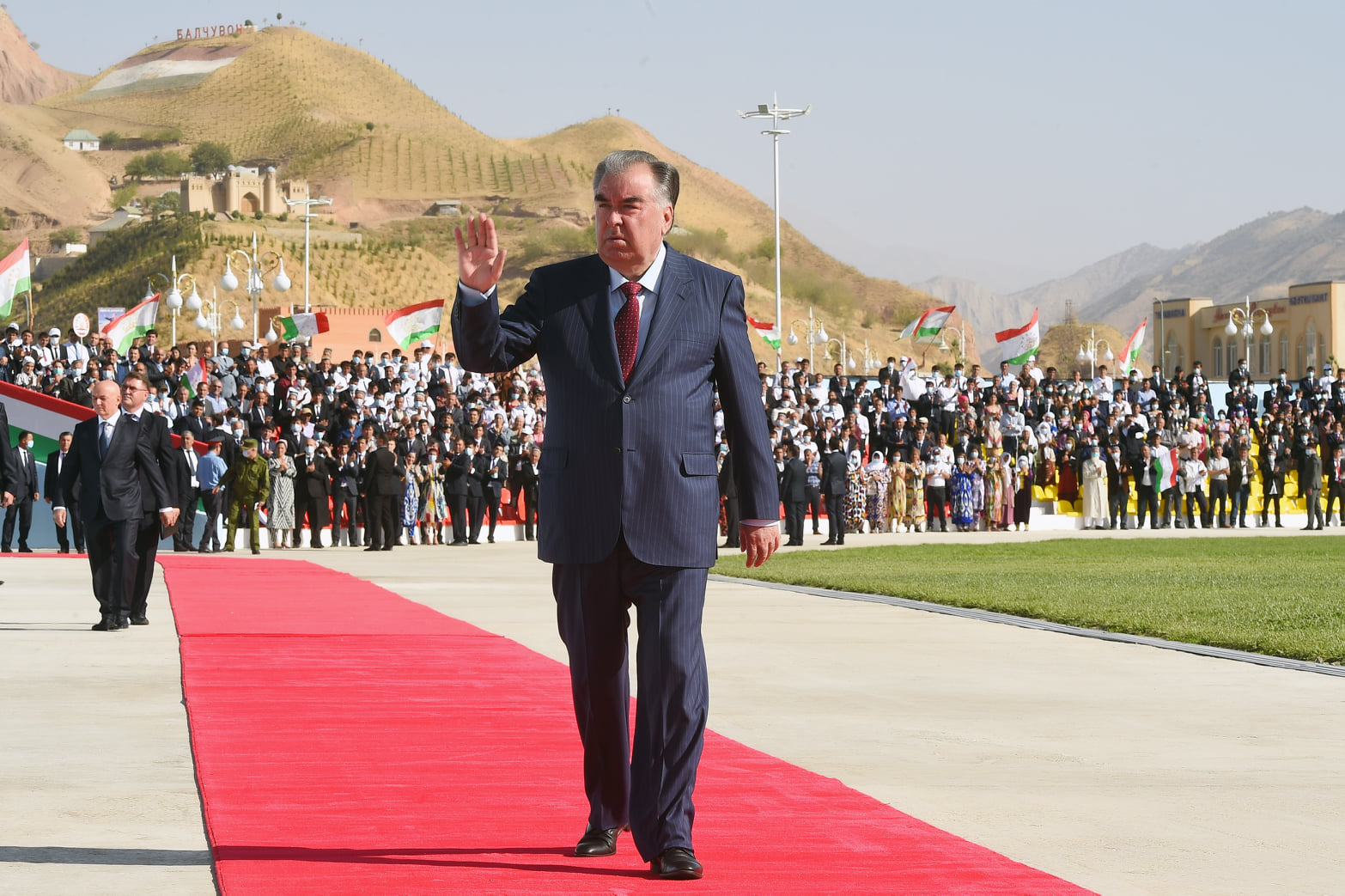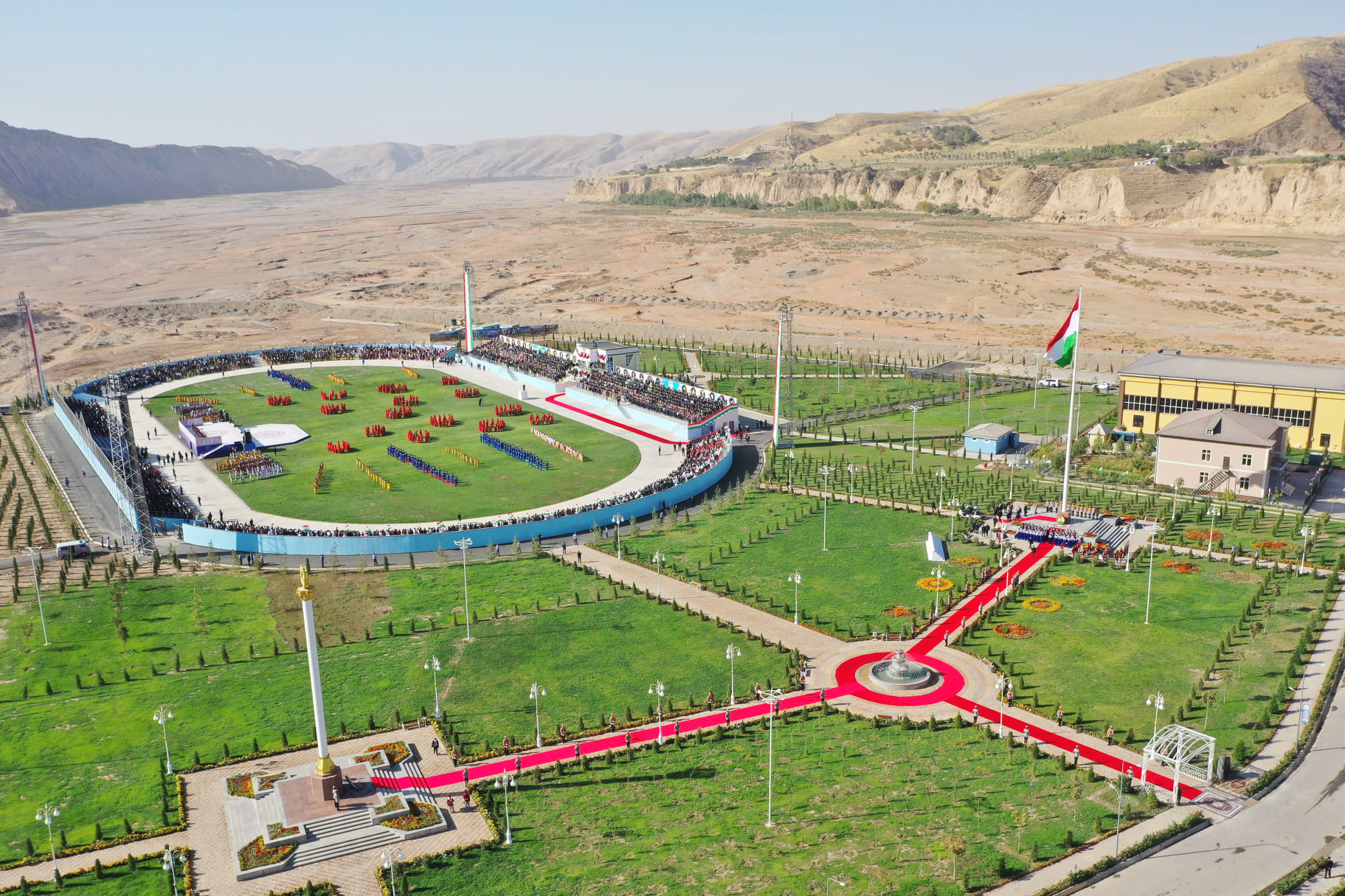 Эмомали Рахмон открыл в Темурмалике 50-метровый флагшток и 22-метровый постамент с Государственным гербом, которые возведены за счет местного бюджета и бизнесменов района.
