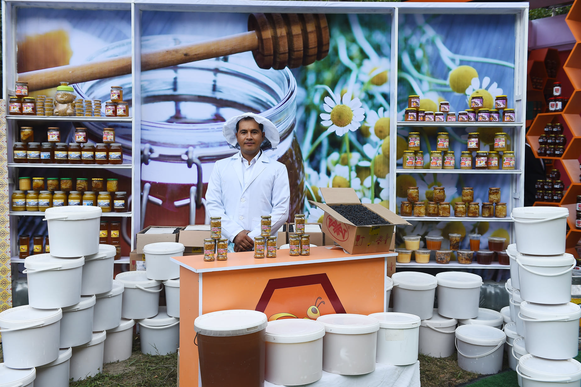 Фермеры из 9 городов и районов страны, в том числе ГБАО, Хатлона и Согда представили разнообразные продукты пчеловодства, фрукты и овощи.