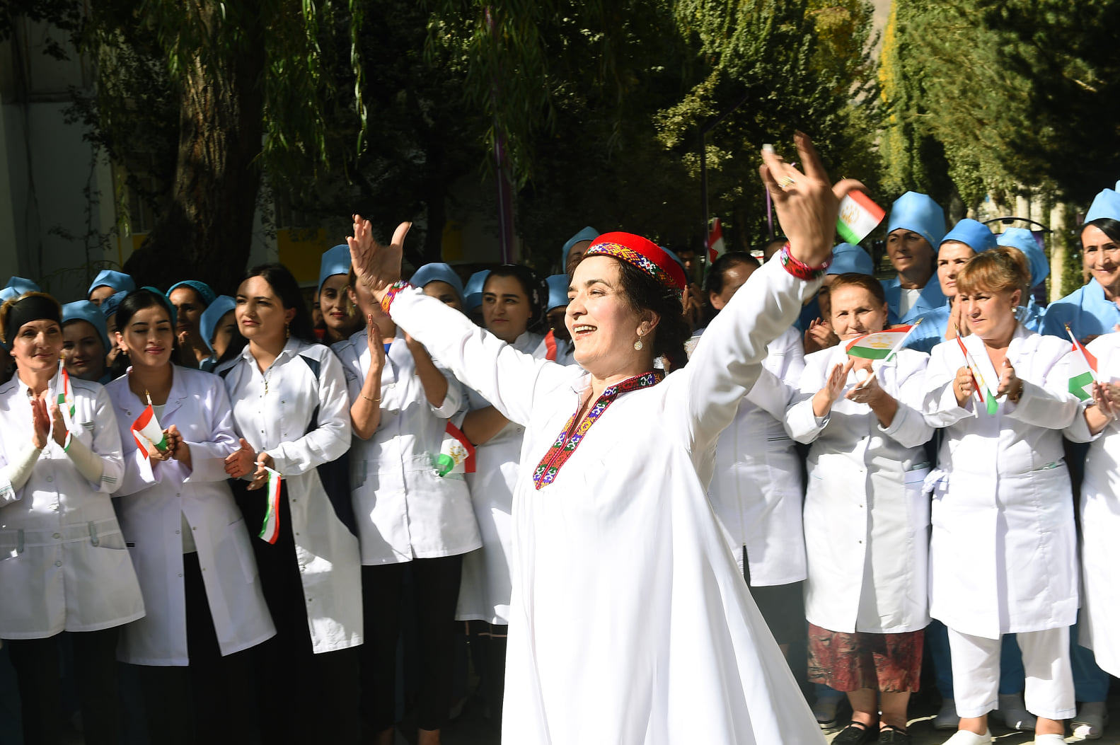 Отмечается, что по ходу передвижения Эмомали Рахмона из каждого уголка города звучали песни и музыка.