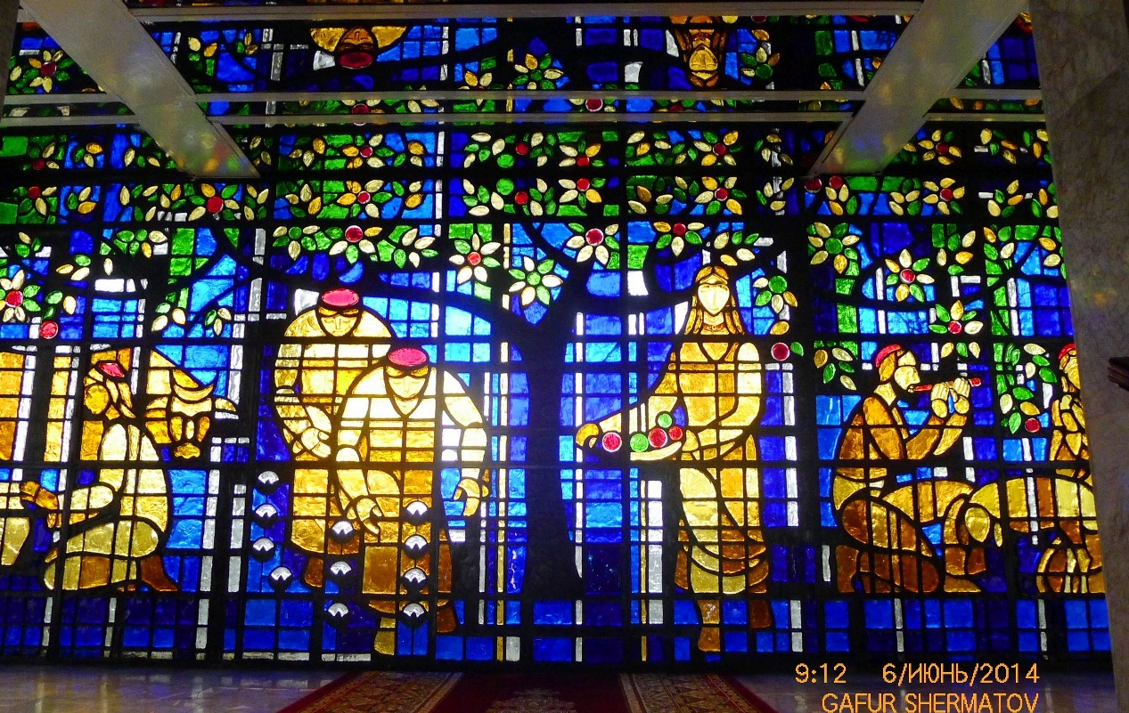 Витраж, межэтажный проход гостиницы «Душанбе». Автор Евгений Просмушкин.