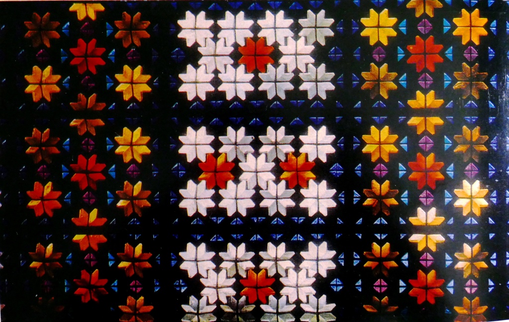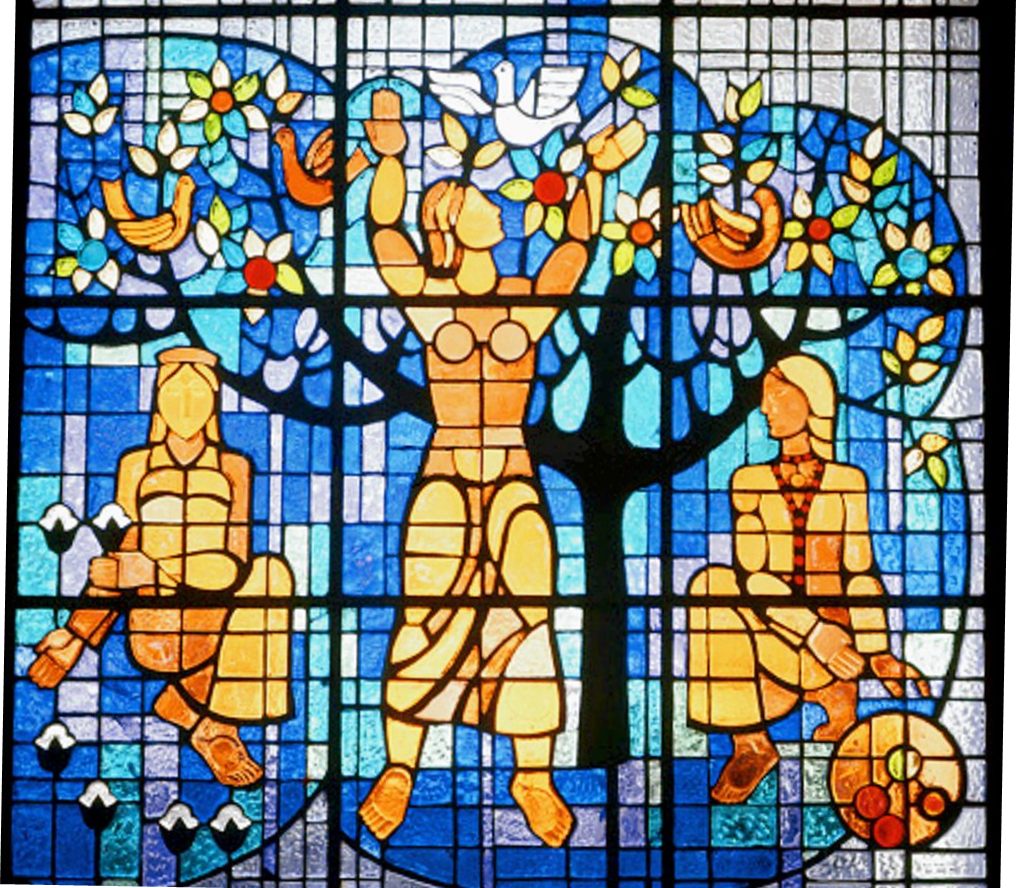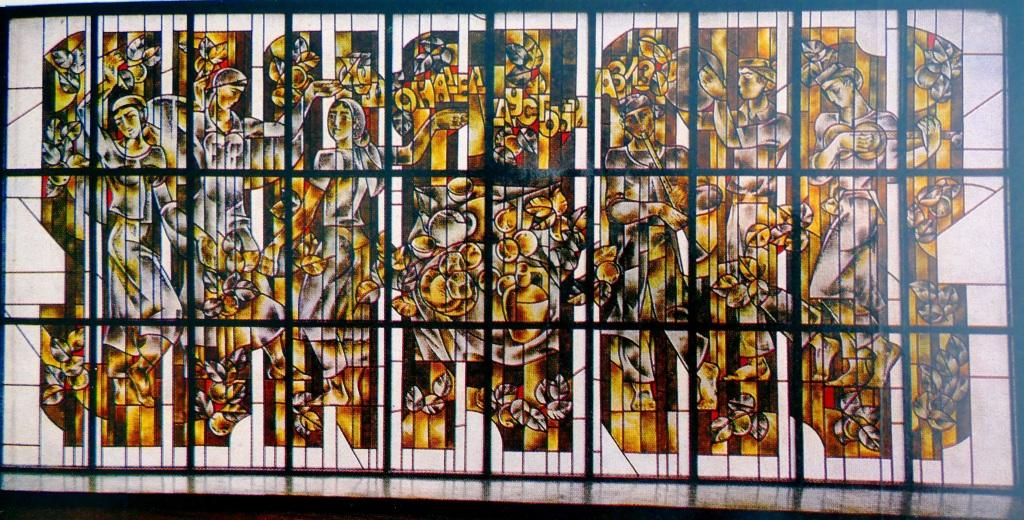 Витраж из цветного стекла в здании Дома Радио, символизирующее изобилие таджикской земли. Душанбе, 1979 г. Автор Евгений Просмушкин.