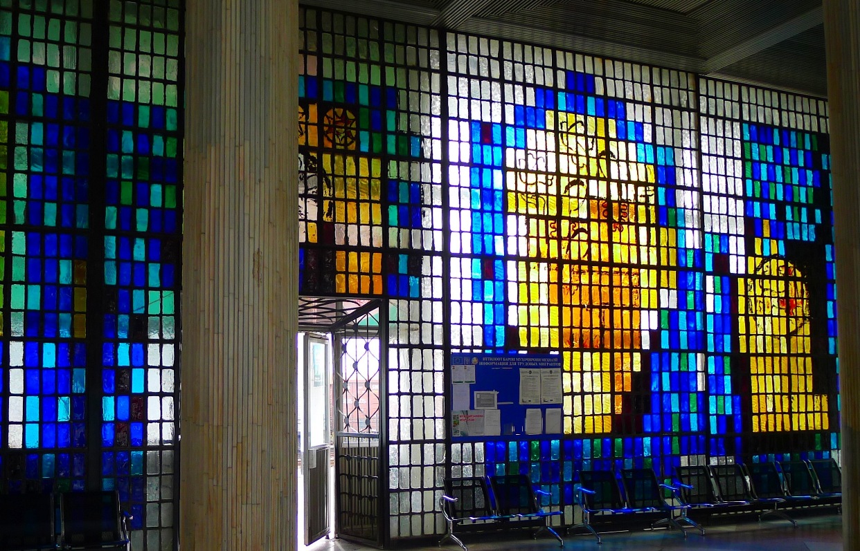 Витраж в зале ожидания душанбинского железнодорожного вокзала, совсем недавно был демонтирован, жаль…