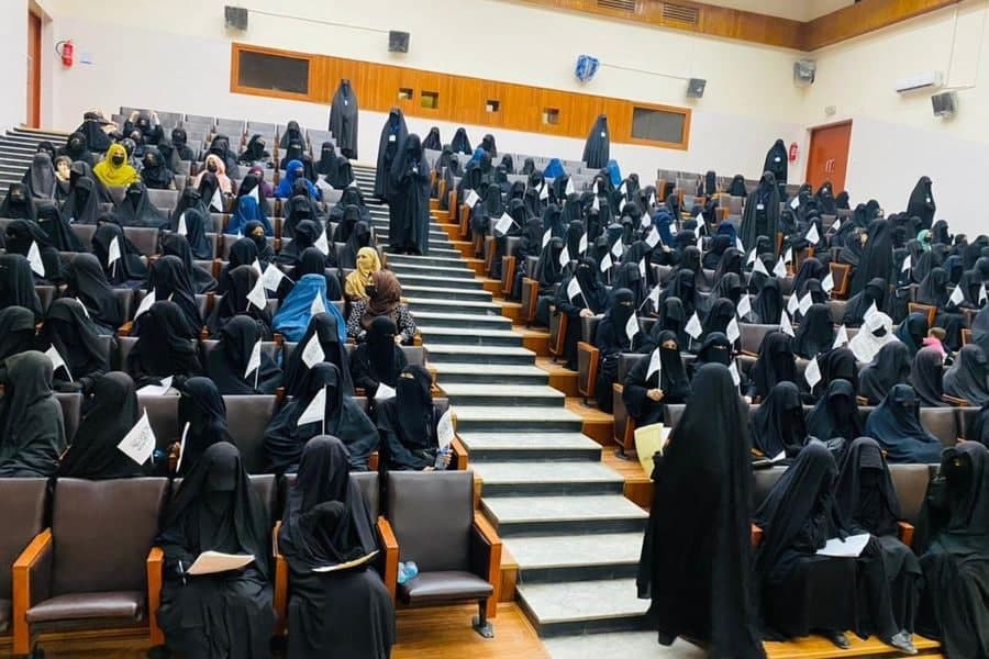 В начале сентября в вузах началась учеба по новым правилам, согласно которым девушки и парни учатся отдельно, при этом девушкам обязательно нужно носить никаб – одежда, закрывающая лицо полностью, кроме части глаз и абайю (длинное традиционное арабское женское платье с рукавами).