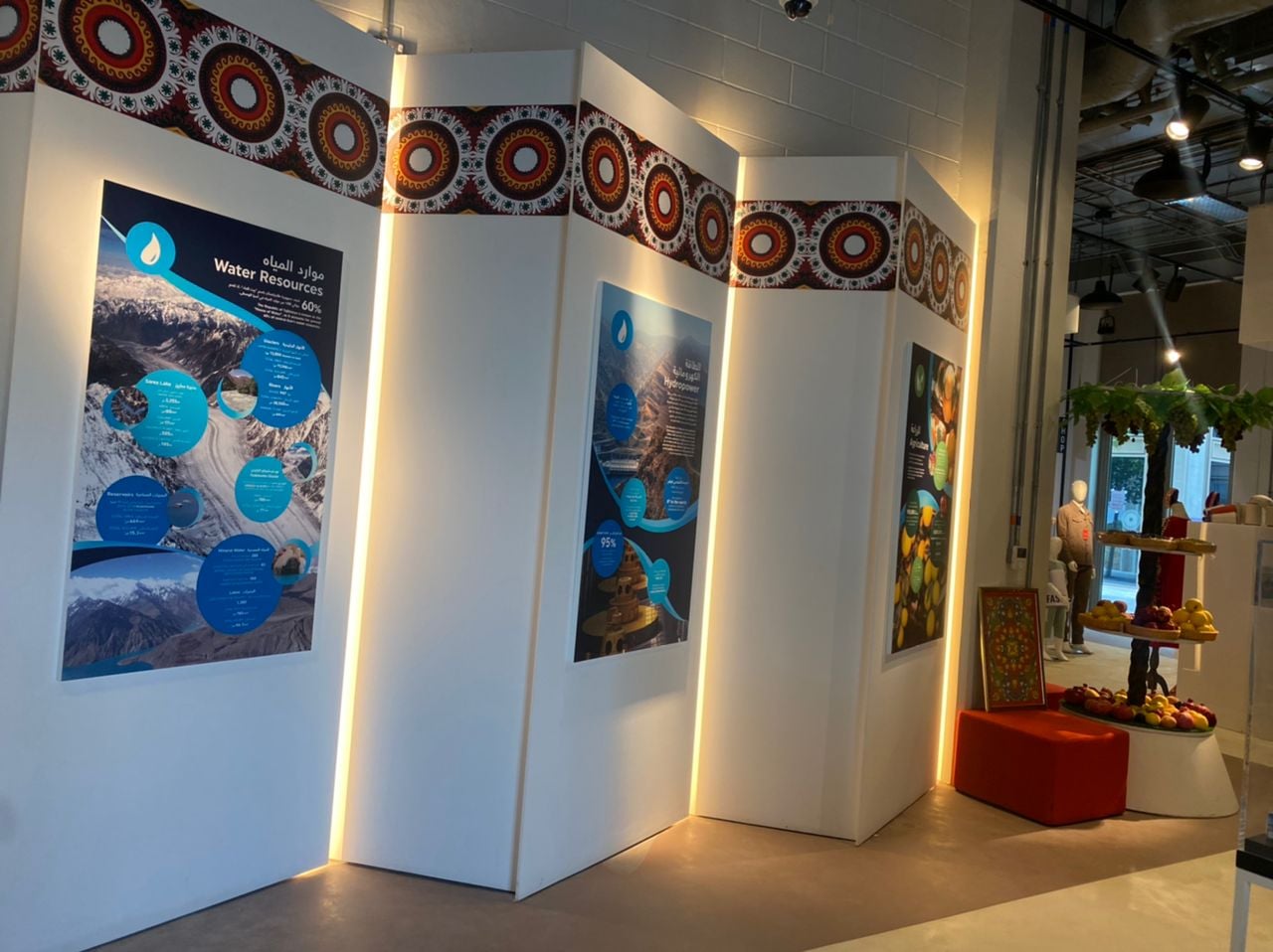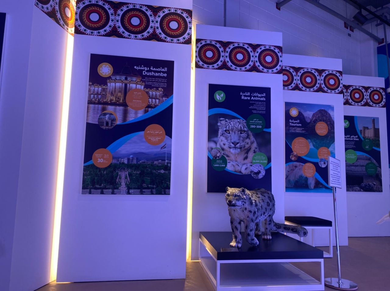 Комитет по охране окружающей среды предоставил экспонаты козла Морхура, барана Марко Поло, изготовленное на 3D-принтере изображение снежного барса, ОАО «Барки Точик» — макет Нурекской ГЭС, а Главное управление геологии — минералы и 13 видов полезных ископаемых.