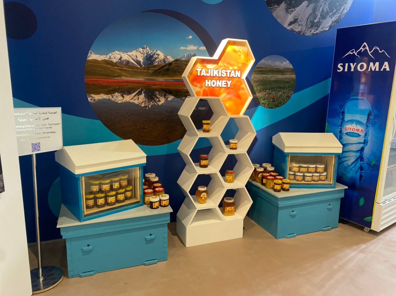 ГУП «Асали Точик» выставил на ЭКСПО-2020 мед из горных трав, расфасованный в тару различных объёмов, компания «Сиёма» — газированную и негазированную питьевую воду в различных емкостях, «Асрори Санг» — сувениры из полудрагоценных и поделочных камней, ООО «Оби Зулол» — образцы соков, Союз ремесленников Согдийской области, ОАО "Ковры Кайроккума" со своей продукцией, а также Национальный бренд «LAAL — Tektails» (образцы продукции, ковры ручной работы, текстильные наборы, женские текстильные сумки).