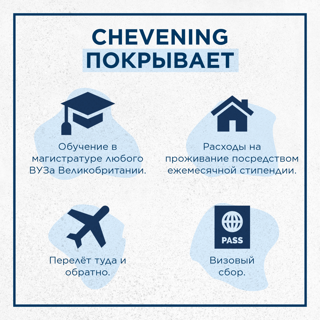 И еще одна приятная новость! Начиная с прошлого года, из-за пандемии Чивнинг больше не требует сдачу тестов по английскому языку. Тем не менее, британские ВУЗы могут проверить уровень английского языка у соискателей при принятии решения о зачислении.