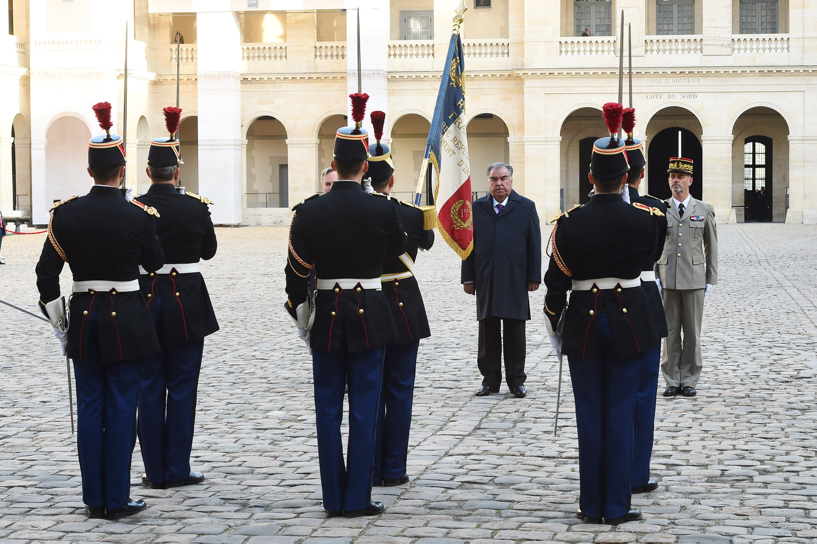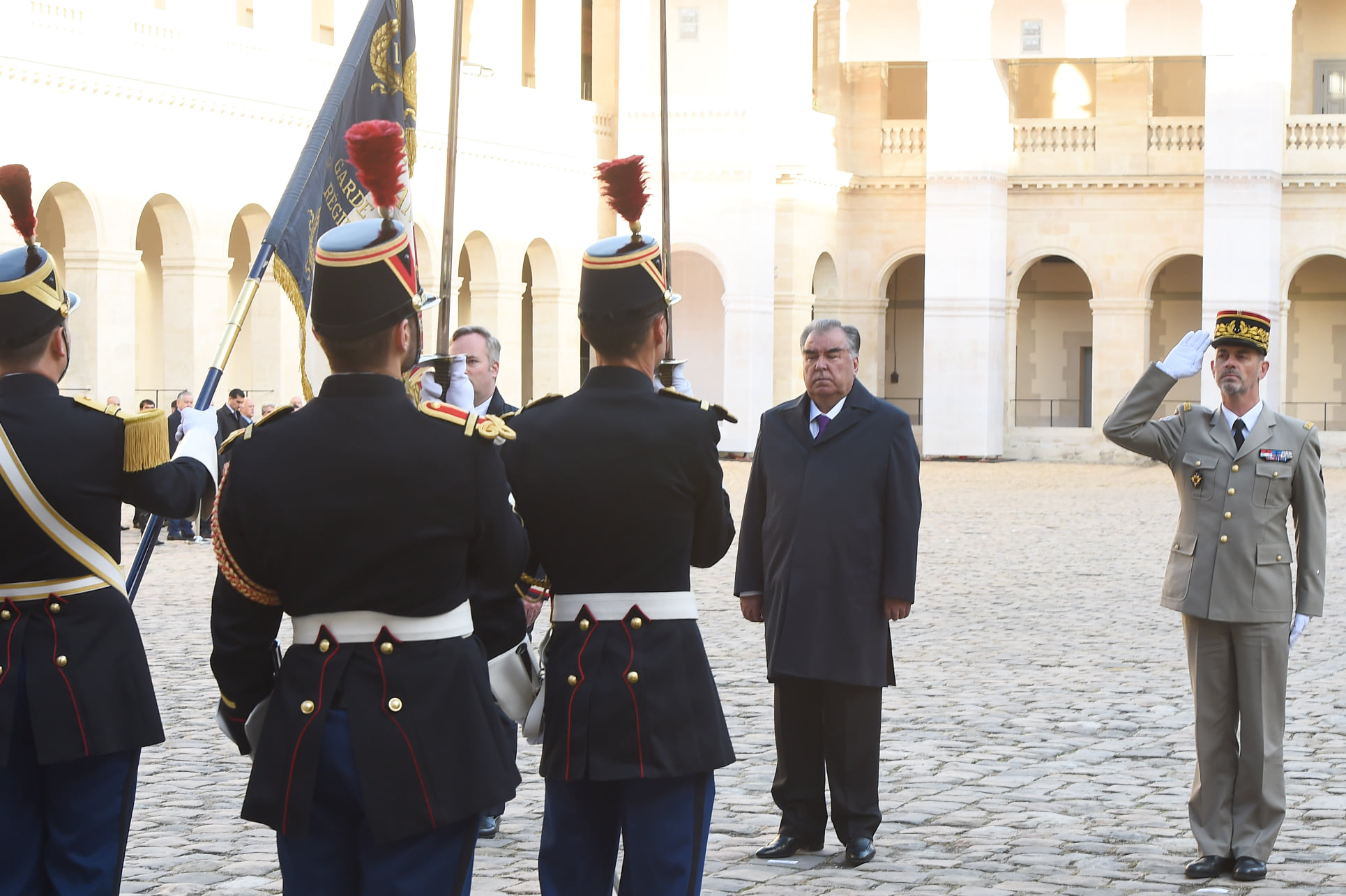 Эмомали Рахмон сегодня прибыл в Париж, где его встретили со всеми почестями.