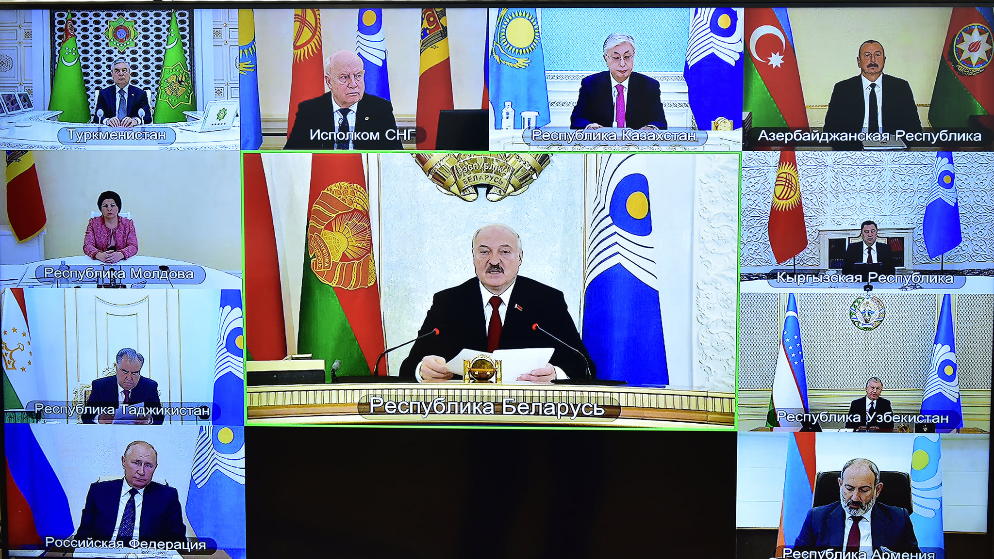 В работе заседания приняли участие и выступили: президент Таджикистана Эмомали Рахмон, президент Азербайджана Ильхам Алиев, премьер-министр Армении Никол Пашинян, президент Беларуси Александр Лукашенко, президент Казахстана Касым-Жомарт Токаев, президент Кыргызстана Садыр Жапаров, премьер-министр Молдовы Наталья Гаврилица, президент Российской Федерации Владимир Путин, президент Туркменистана Гурбангулы Бердымухамедов и председатель Исполнительного комитета, Исполнительный секретарь Содружества Независимых Государств Сергей Лебедев.