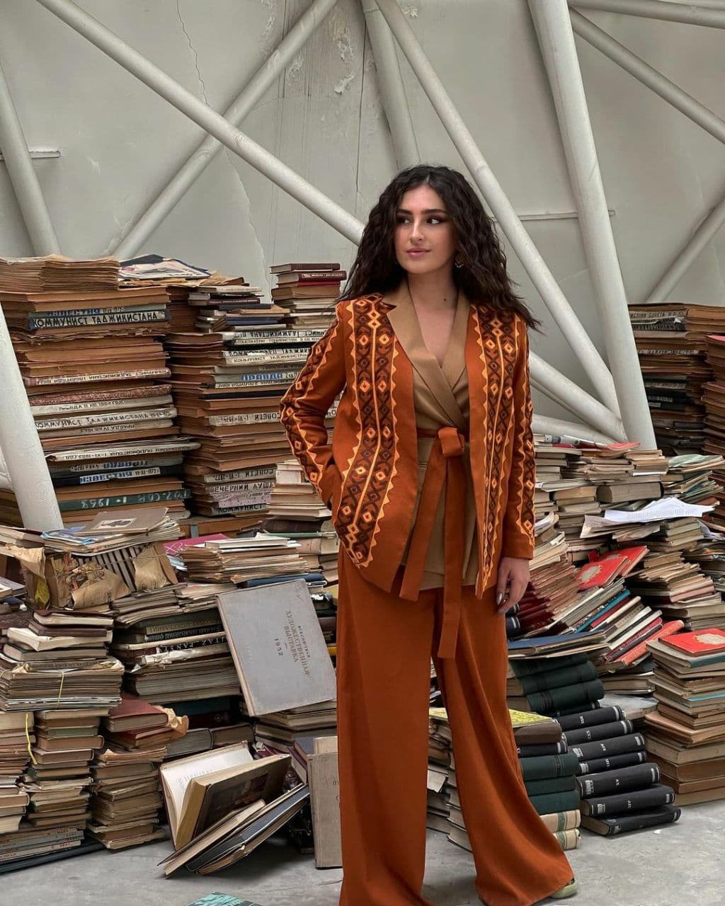 Я это изучала, изучила и создала. Я сблизила европейскую одежду с национальным колоритом так, что многим это понравилось. И сейчас у многих начинающих дизайнеров, когда я хожу в колледжи, я вижу это, вижу свой почерк и мне это безумно нравится.