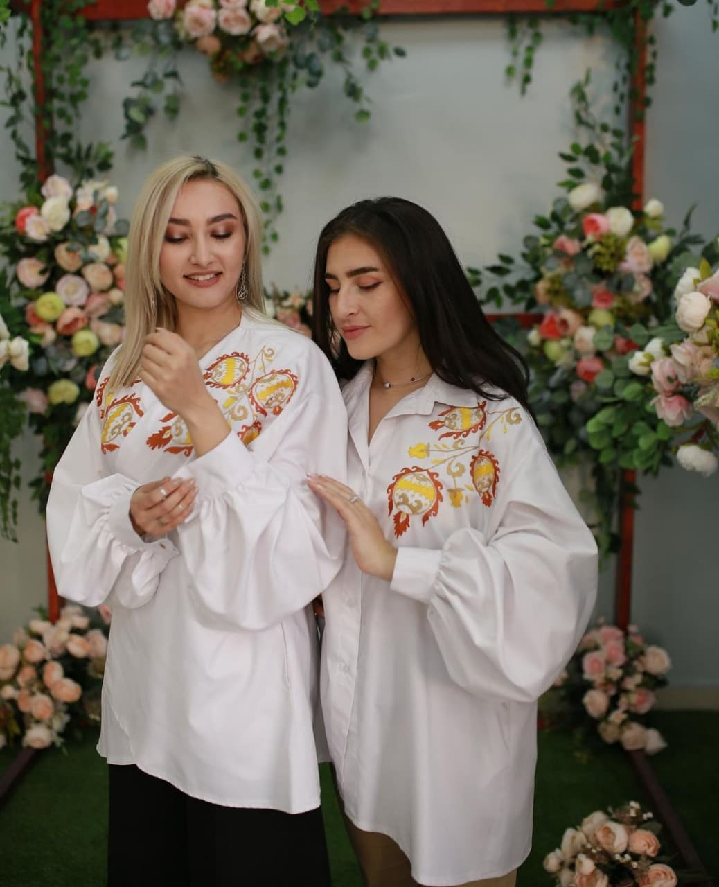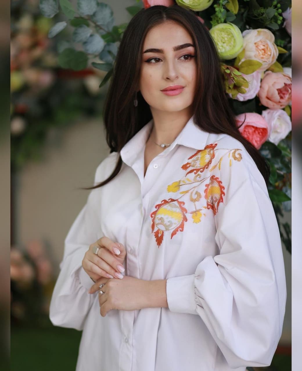 Я свою команду сама собрала. На данный момент у меня 15 человек. Большинство из них работают дома, это женщины, которые делают всю вышивку на моих чапанчиках, джинсах…