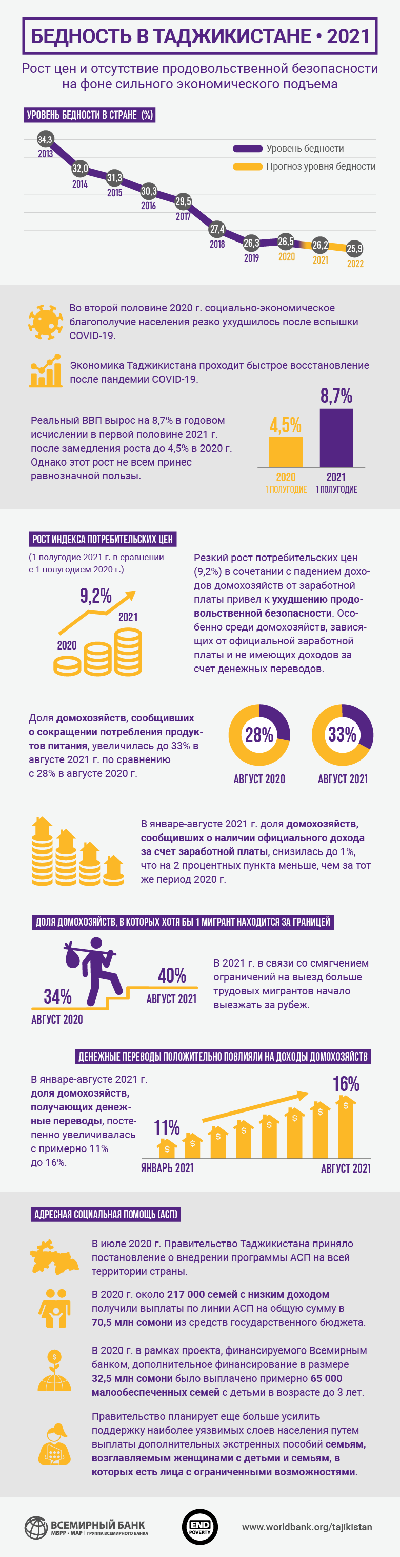 «В условиях высокой инфляции и низкого уровня вакцинации бедные и наиболее уязвимые слои населения продолжают страдать от ограниченного доступа к продовольствию, неопределенности и ограниченных возможностей трудоустройства, что особенно негативно сказывается на женщинах в регионе», — подчеркнули специалисты ВБ.