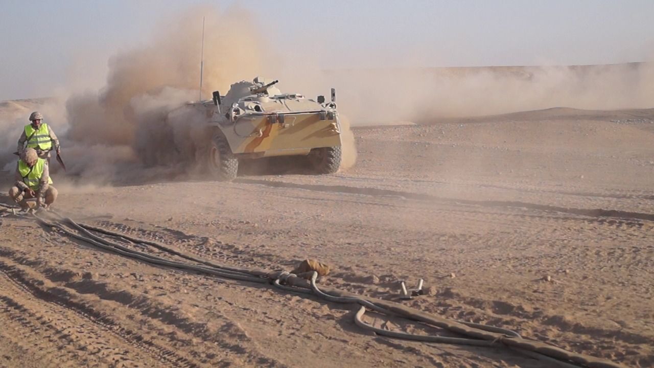 На полигоне «Харбмайдон» вблизи границы с Афганистаном, где проходят спецучения «Эшелон-2021» воинских контингентов государств-членов Организации Договора о коллективной безопасности, военнослужащие провели массовую заправку бронетехники.