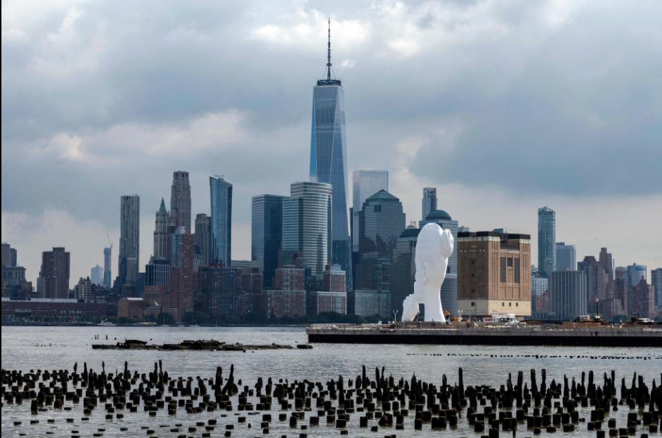 В Нью-Джерси на реке Гудзон установили женскую голову с прижатым к губам пальцем. Огромная статуя высотой более 24 метров смотрит на Манхэттен, передает Медуза.