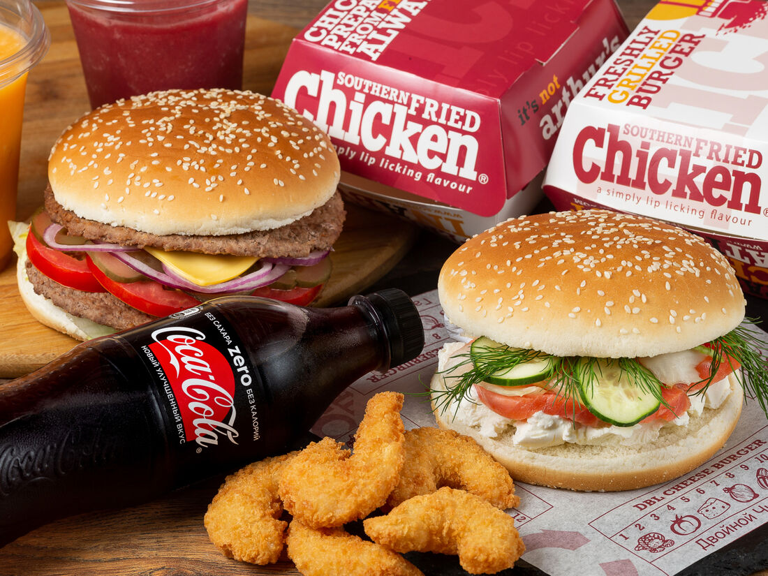 Меню "KFC" не сильно отстает по разнообразию, и даже преуспевает в количестве разных баскетов, но эта сеть ресторанов специализируется только на блюдах из курицы.