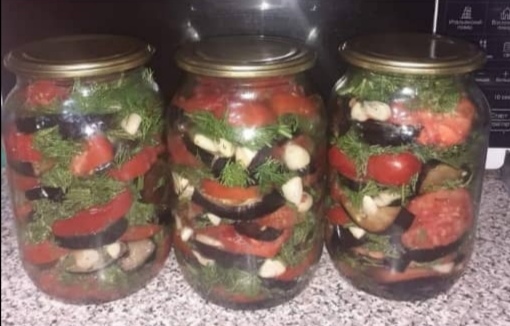 После этого перемешиваются с укропом, чесноком и растительным маслом. Далее, когда всё готово, утрамбовывается в подготовленные банки и стерилизуется в течение определённого времени.