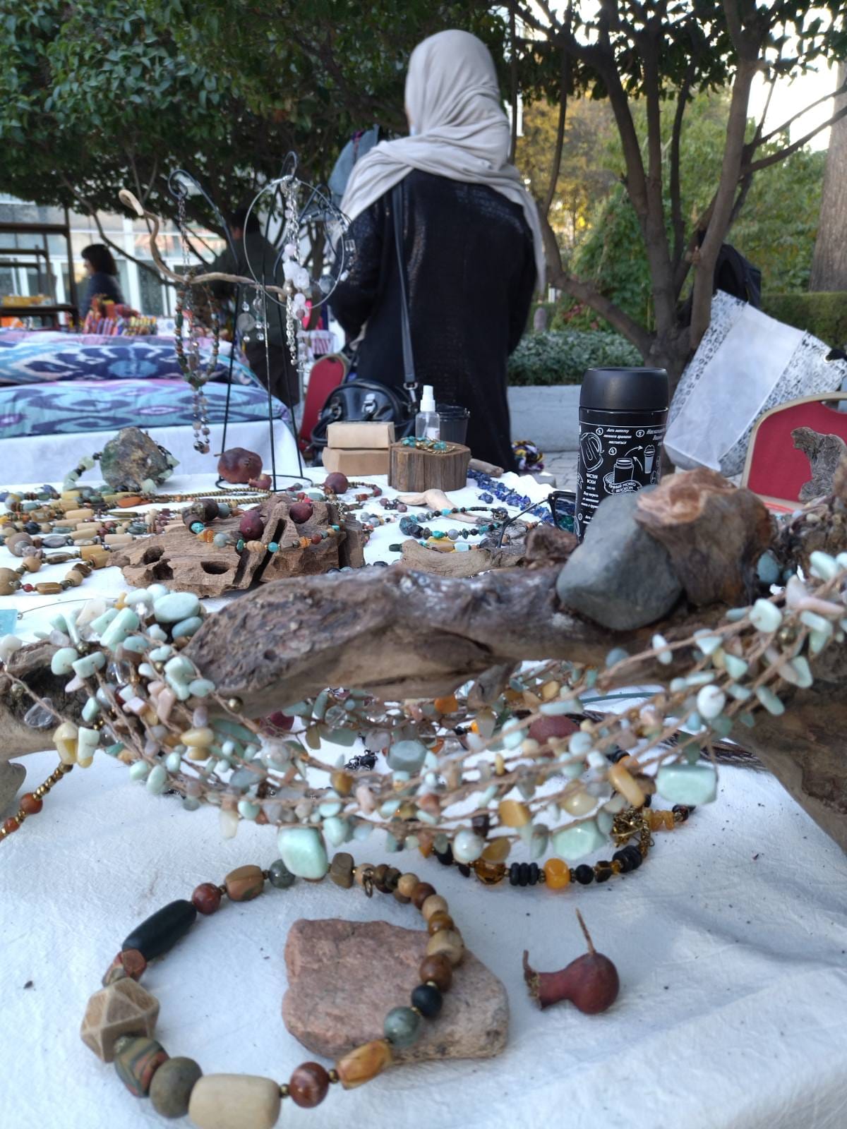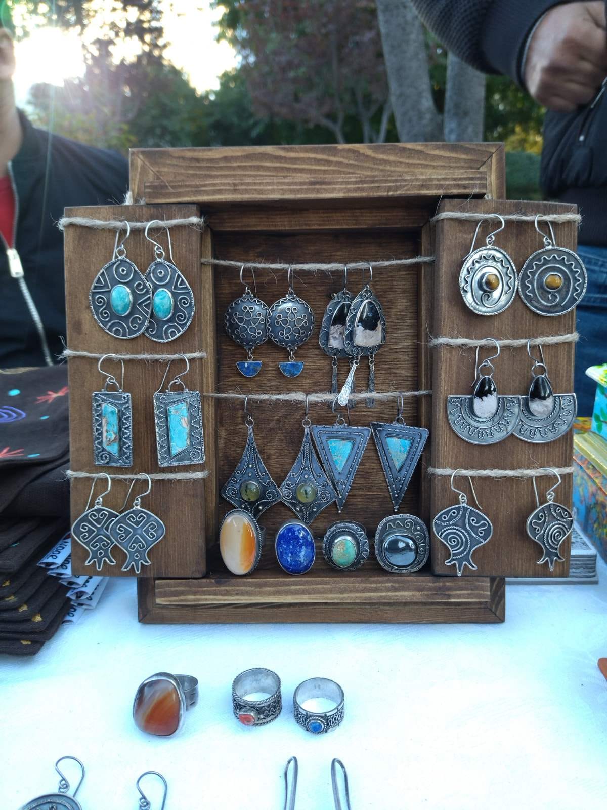 Кроме уже известных мастеров на выставке были работы и новых талантов — ювелир Кристина Ильяс порадовала креативные серебряными кольцами и серьгами. Был тут столик с шикарной афганской золотой вышивкой, делали ее женщины – вынужденные беженцы.