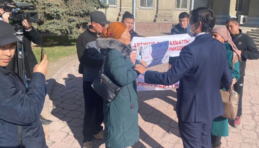 12 ноября в Бишкеке к зданию Дома правительства на митинг вышли родственники Сайдахмеда Артикова. Его супруга Наргиза Артикова заявила, что ее мужа задержали без причин, подвергли пыткам и сейчас он находится в больнице.
