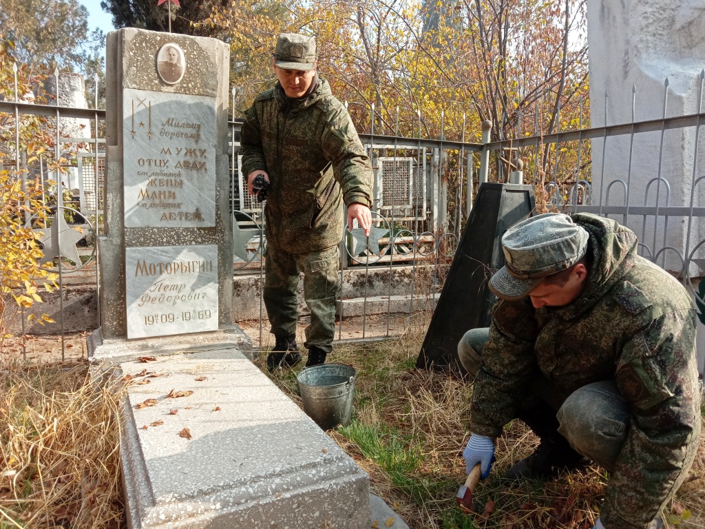 Уже спустя три часа «Аллея Славы», где находится мемориальный комплекс, посвященный бойцам и командирам Красной Армии, умершим в эвакогоспиталях Сталинабада (Душанбе) в 1941-1945 гг., была полностью очищена от дикорастущей растительности.