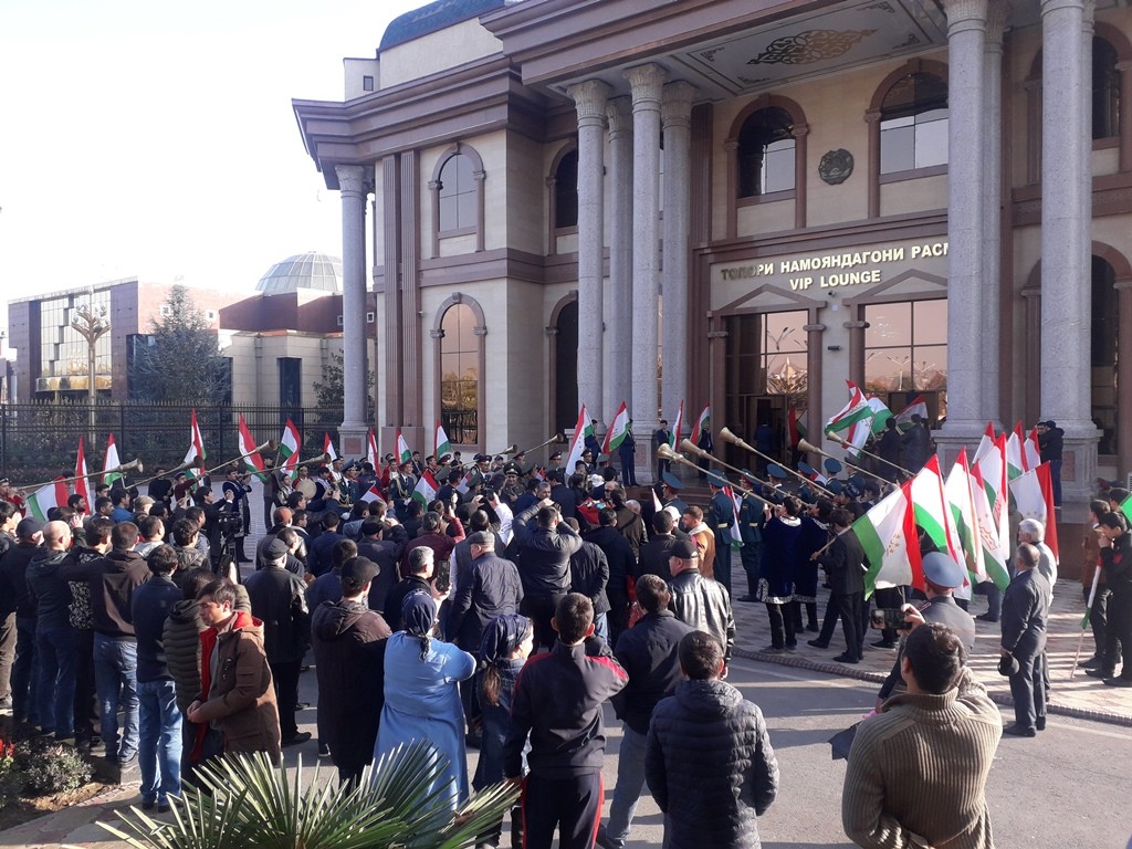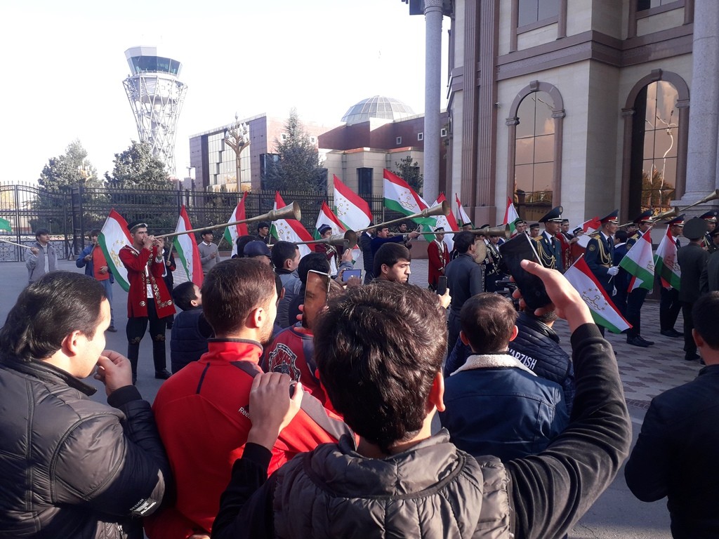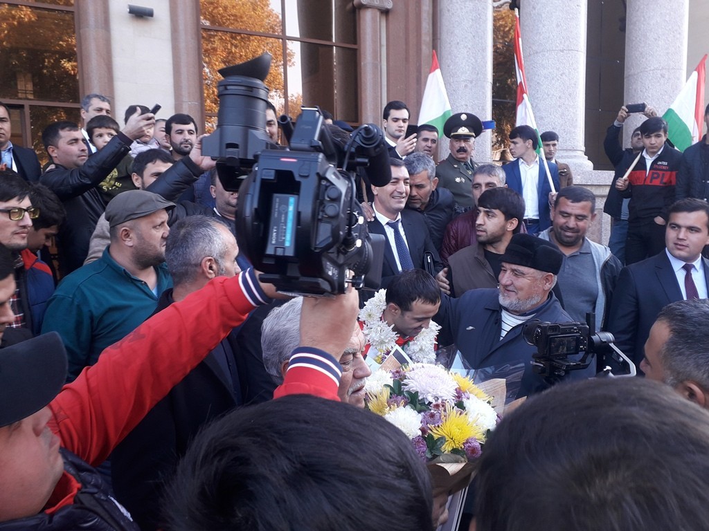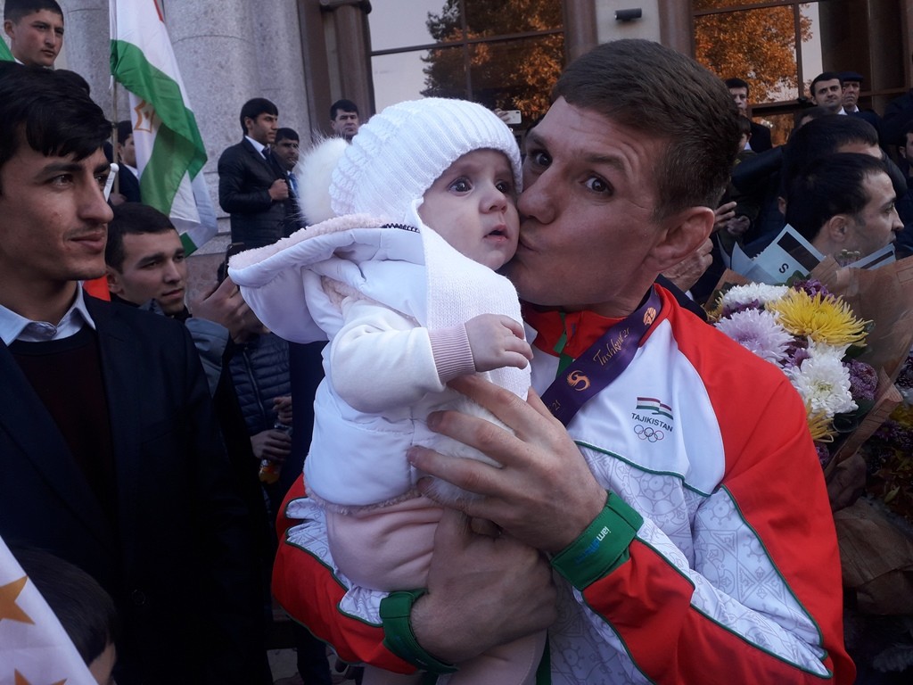 В Душанбе 15 ноября торжественно встретили таджикских самбистов, которые завоевали медали на чемпионате мира. Встречать спортсменов в аэропорт пришли руководители спорта, близкие и родственники героев, их друзья и болельщики, военный оркестр, музыканты, журналисты.