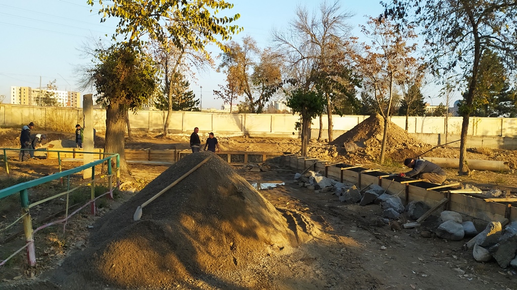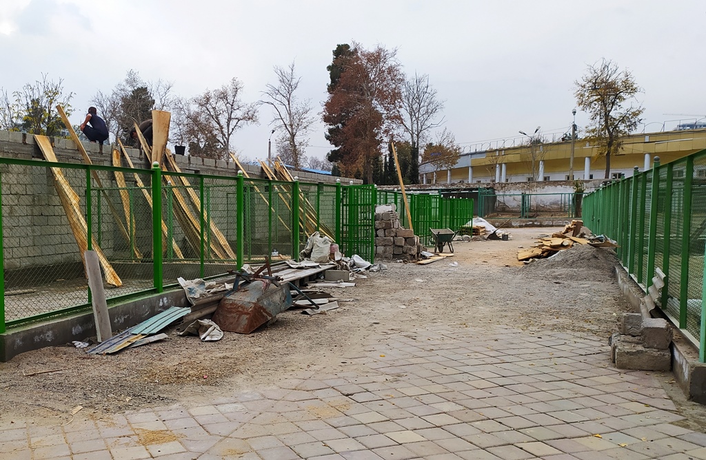 Многие помещения перестраиваются, ограждения красятся, а земля посыпается песком.