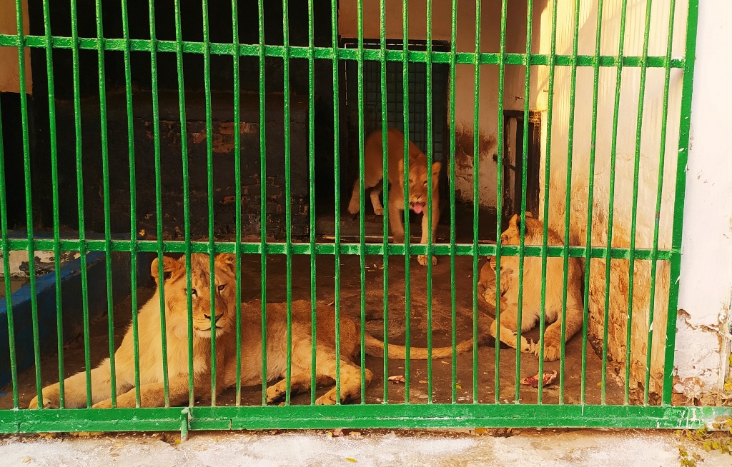В вольерах для хищных млекопитающих отремонтированы крыши, а внутри имеются укрытия-домики, в которые к зиме кладут деревянные поддоны. Сотрудники зоопарка считают, что этого достаточно для львов, медведей, волков, лис и других хищников. Однако крыши отремонтированы еще не во всех вольерах, и в шифере видны большие дыры.