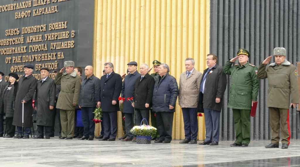 Здесь присутствовали представители Министерства обороны Республики Таджикистан, послы России, Беларуси, Казахстана, Кыргызстана, Узбекистана, военнослужащие 201-ой военной базы РФ, Группы Погранвойск РФ в РТ, ветераны войны и труда, ветеранские организации, воины-интернационалисты, студенты и школьники.