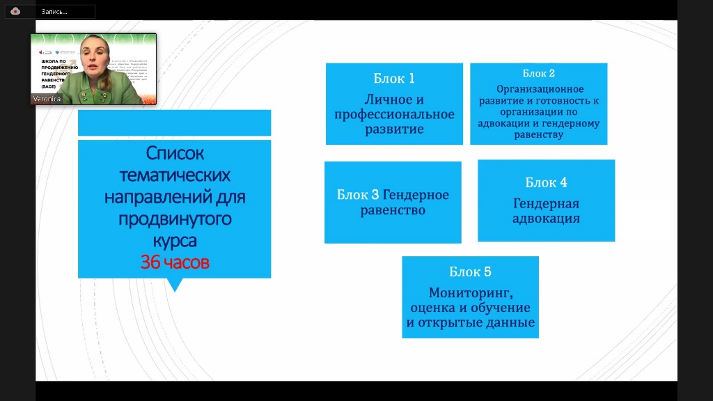 Основная цель 3-дневного семинара — не только стартовать и познакомить участников друг с другом, но и выстроить основные экосистемы гендерного равенства и гендерной адвокации, утвердить список тематик, которые будут рассмотрены и изучены в рамках продвинутого курса Школы, отметила Вероника Крецу международный эксперт по адвокации и гендерному равенству.