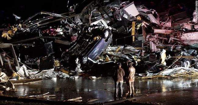 Из-за разгула стихии сильно пострадал город Мэйфилд. Там была разрушена фабрика по производству свечей, здание буквально превратилось в груду обломков, под которыми нашли около 40 выживших работников.