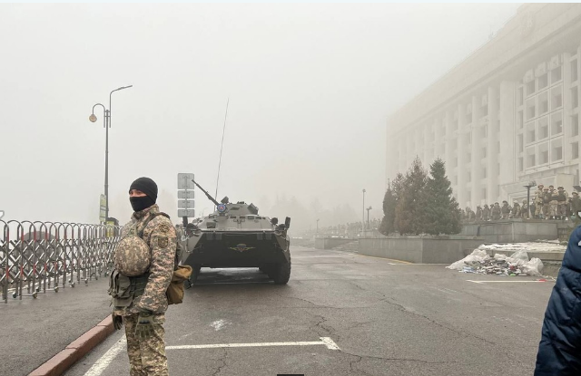 Силовики применяли для разгона протестов светошумовые гранаты и слезоточивый газ. Протестующие прогоняли военную технику с центра Алматы.