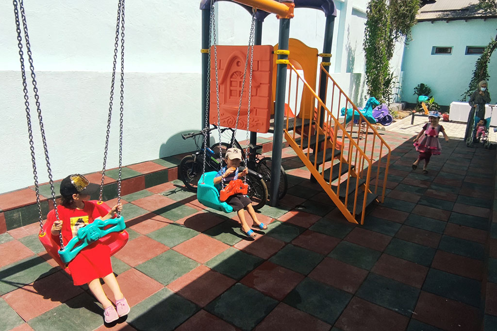 Во дворе тренингового центра ТИКА также обустроило детскую площадку, где могут провести время дети, мамы которых занимаются, а оставить на это время детей не с кем.