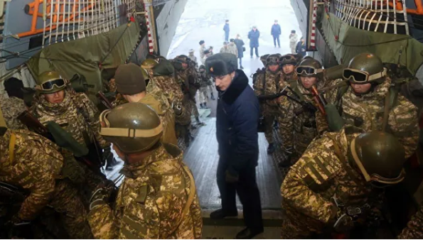 Самолёты Воздушно-космических сил России доставили в Алма-Ату военных из Кыргызстана, которые прибыли в Казахстан в составе миротворческих сил Организации Договора о коллективной безопасности (ОДКБ).
