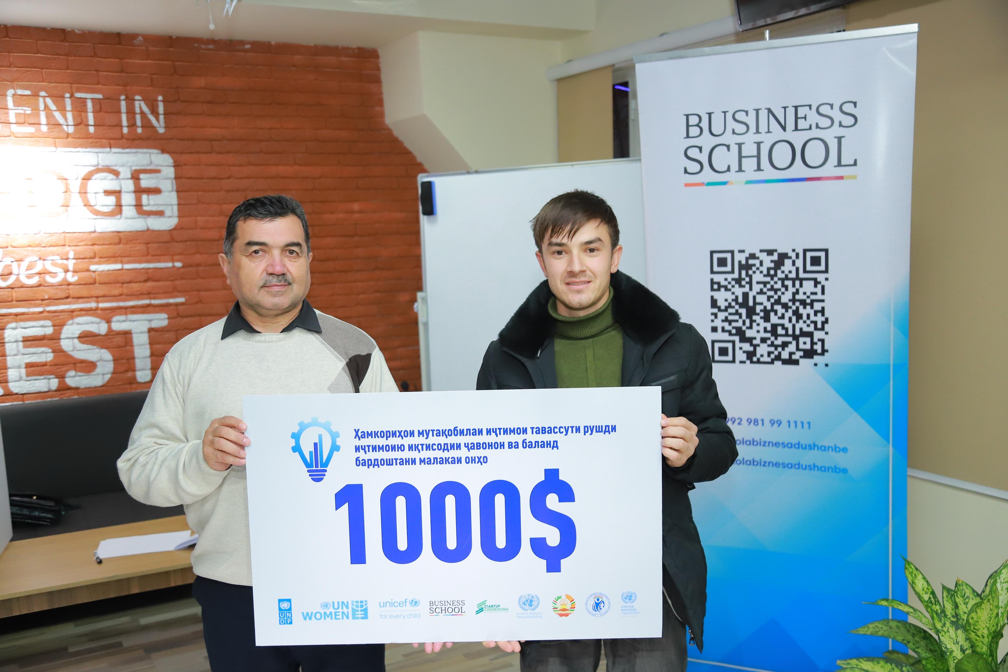 «На этом тренинге я участвовал с октября по декабрь 2020 года. В декабре 2020 года я подал заявку на грант и в апреле 2021 года я его выиграл. Помимо этого конкурса, я участвовал в конкурсе Бизнес Школы и выиграл грант на сумму тысячу долларов. Повторюсь, так как на тренингах Бизнес Школы я изучал социальное предпринимательство и идея мне понравилась, я начал писать проекты. В прошлом году был успешно реализован мой проект на сумму $10 тысяч «Вовлечение молодых семей в пчеловодство в Бальджуванском районе». Второй — разведение перепелов среди дехканских хозяйств. Сейчас уже идет его реализация, и продлится до конца марта».