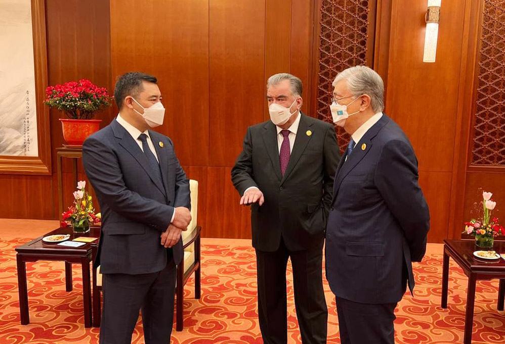 На одной из них — Эмомали Рахмон беседует в неформальной обстановке с президентом Кыргызстана Садыром Жапаровым и казахстанским лидером Касым-Жомартом Токаевым.