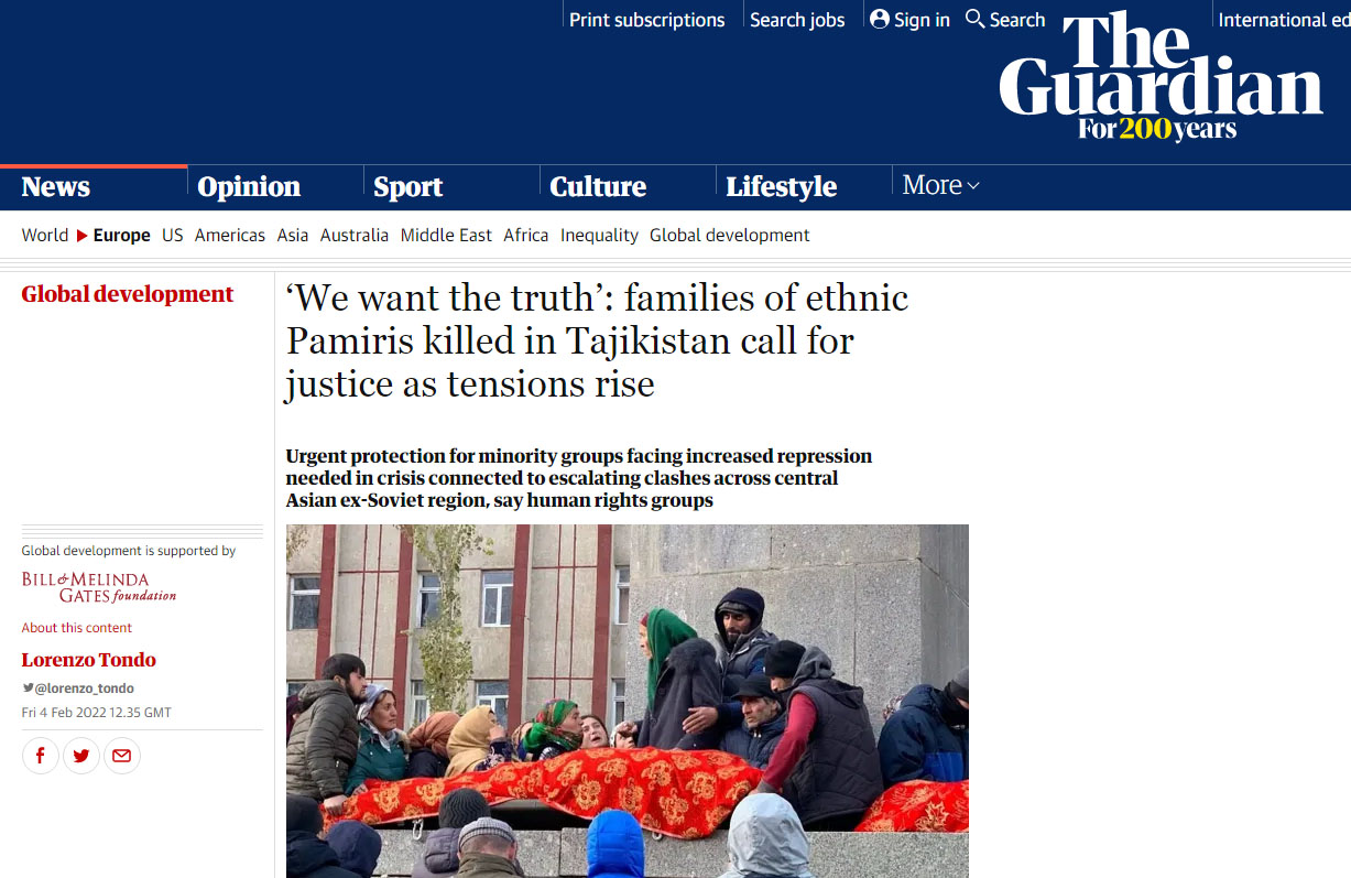 Между тем, материал о ситуации на Памире опубликовало известное зарубежное издание The Guardian.