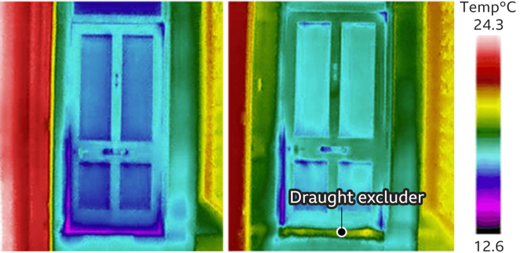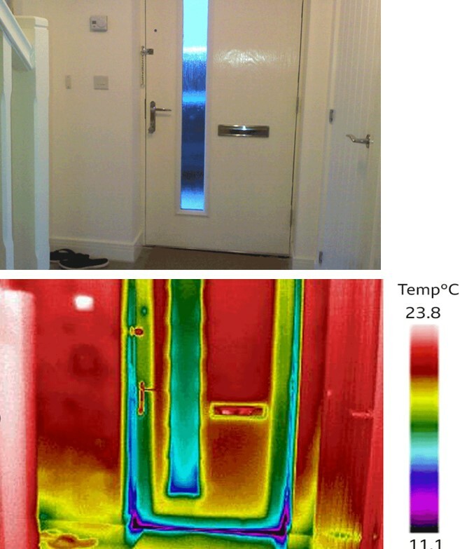 По словам Джеймса Ричардсона из компании IRT Surveys, самые низкие температуры отвечают черному, фиолетовому и синему цвету. Сквозняки вокруг двери как раз окрашены в них.