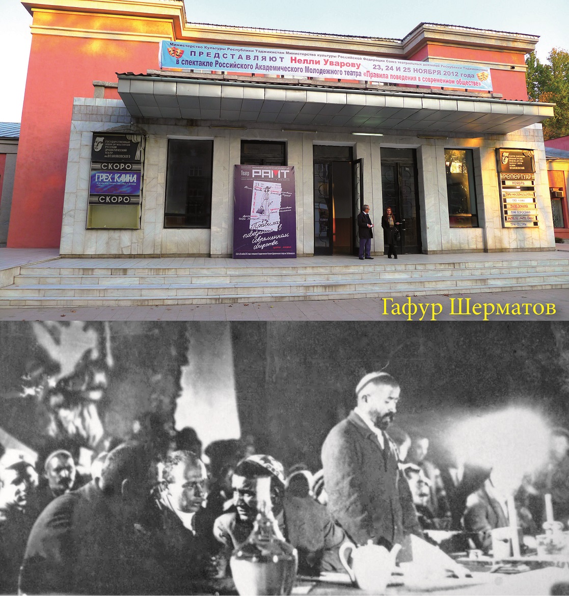 Вплоть до начала 40-х годов в этом здании проходили заседания Верховного Совета Таджикской ССР и другие общественные собрания и съезды. С трибуны сцены Дома дехканина выступали такие известные люди как Нусратулло Махсум, Шириншо Шотемур, Садриддин Айни, Мирзо Турсун-Заде, Бободжан Гафуров, Валериан Куйбышев, Юлиус Фучик, Александр Ферсман, Евгений Павловский, Семен Буденный, Расул Гамзатов, Чингиз Айтматов, Павел Лукницкий и многие другие. Почти 80 лет в здании работал русский драматический театр им В. Маяковского.