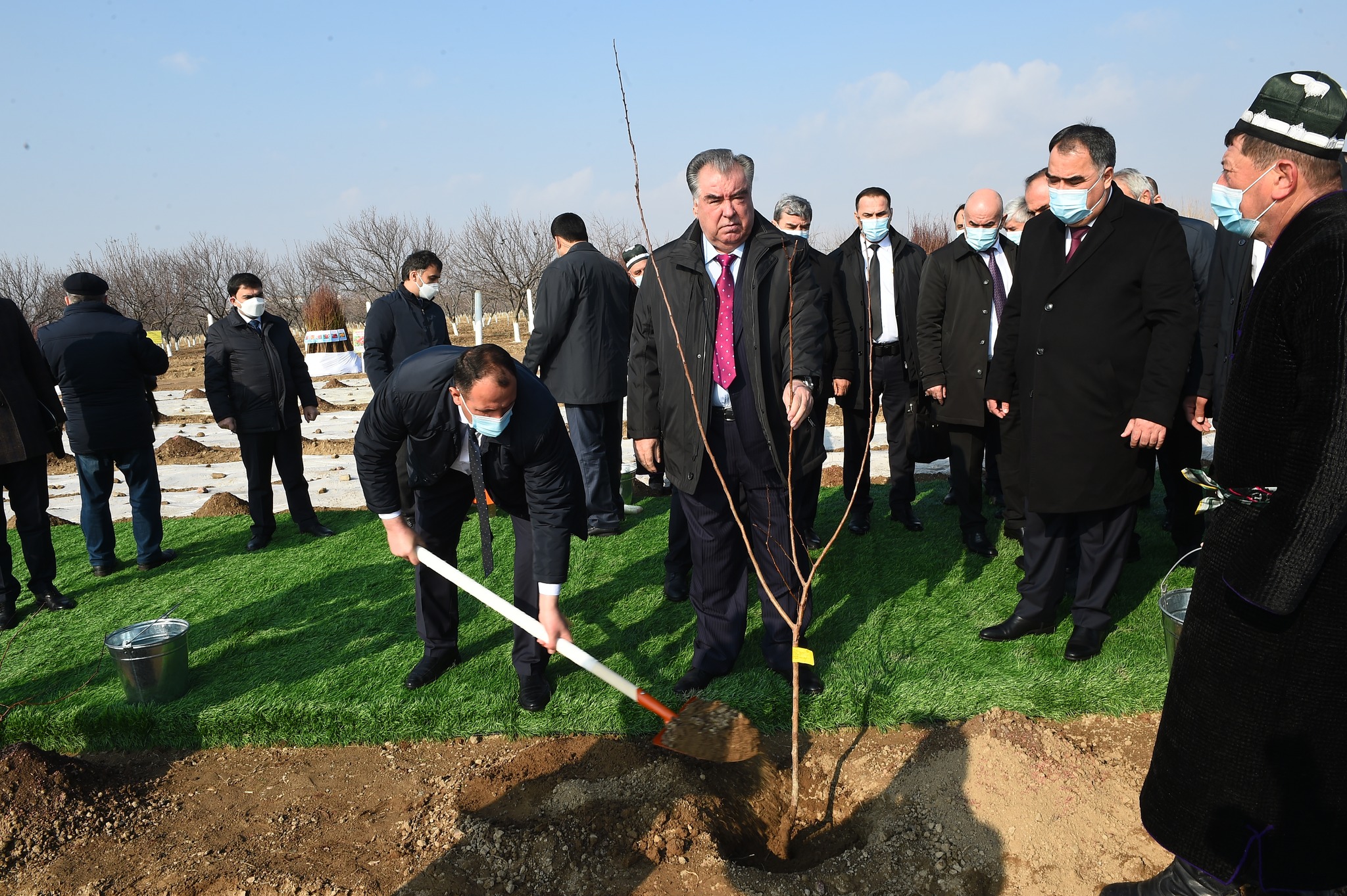 Затем Эмомали Рахмон посадил саженцы абрикоса. которые были завезены из Турции. Здесь на 5 га земли будет посажено порядка четырех тысяч саженцев низкорослых абрикосов
