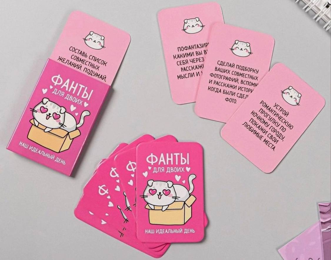 Инстаграм-магазин @hama_shop.tj тоже подготовился к празднику, тут можно приобрести романтическую игру фанты “Котики” всего за 49 сомони.