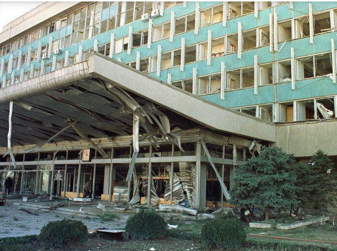 Подъехав к зданию, мы увидели огромную воронку, образовавшуюся от взрыва машины, начиненной взрывчатым веществом, людей, раненных осколками разбитых взрывной волной стекол, частично разрушенные здания. Находясь на площади, мы слышали взрывы в других частях города, происходившие с разными интервалами", – отметил он.